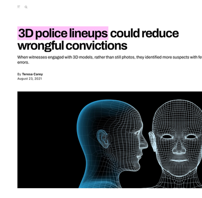 Accurate eyewitness identification (ID) is a cornerstone of police inquiries and national security investigations. Yet, the technology used to display lineups has not fundamentally changed over the past century. Worldwide, police present witnesses with 2D photographic lineups. But eyewitnesses often err on ID tests—analyses of real- world police identification parades reveal that witnesses quite often identify known-innocent suspects as culprits. Recently, a number of new procedures have been developed, including interactive lineups. See the figure below.